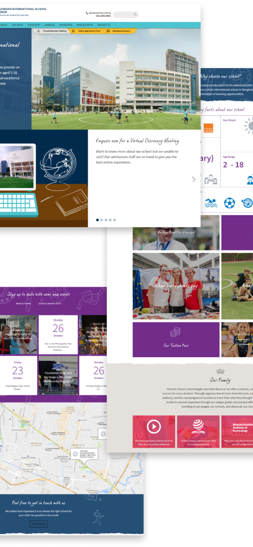 St Andrews International School Bangkok is one of the many international private schools run by Nord Anglia Education. Our biggest client as Qrious, St Andrews was in need of a website using the same templates which are used to power the many other NAE schools. But as with any template, this required bespoke branding applied to it. Working internationally with the client, I was responsible for the bespoke branding of this website adopting there specific branding requirements.