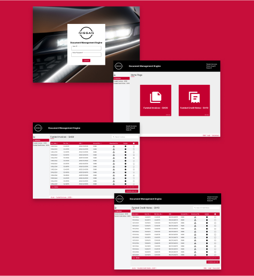 When Nissan split from Renault, Nissan UK required there own bespoke systems to account for there own working having shared the majority with Renault. One of these was the invoicing system used by both dealers and dealer groups to manage invoices directly with Nissan UK. Dealers would have the option to view, export and download invoices or credit notes as and when necessary. The initial piece of work i was involved in involved redesigning the application based off the previously shared system with Renault. Because of this we were able to adopt Nissans design principles into this application while also giving the application a much needed design refresh. Over time, this redesign of the application would be used as a springboard for all Nissan divisions across Europe to adopt this system and the redesign was done with scalability in mind.