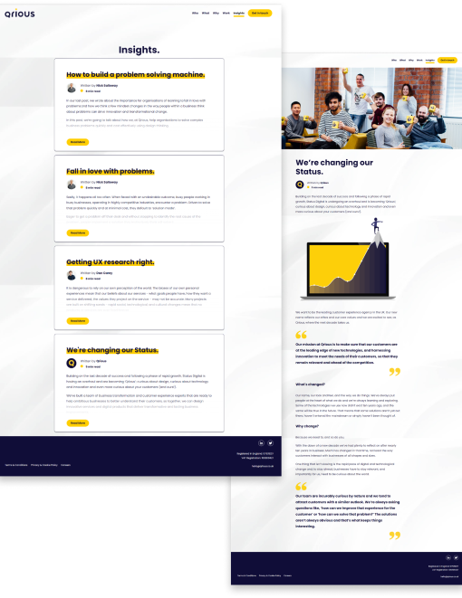 When Status Digital rebranded to Qrious, we required our own new blog section which we would call Insights. Working as a team, my role was to produce the “Insights” Page and respective articles. This piece of work allowed me to fully discover a working example of a “Design System” stemming from a component based design, all the way to coding it to that particular standard.